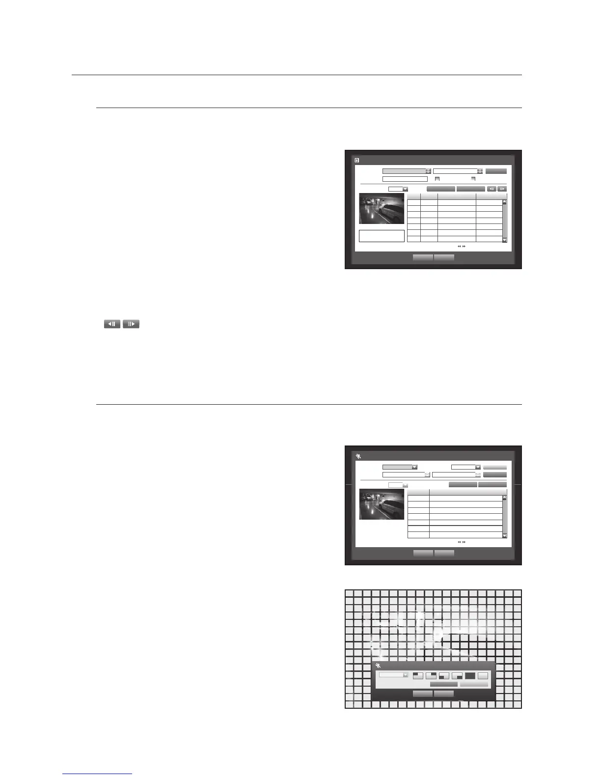 If a motion is detected in each channel, you can set a desired area to perform the search.
