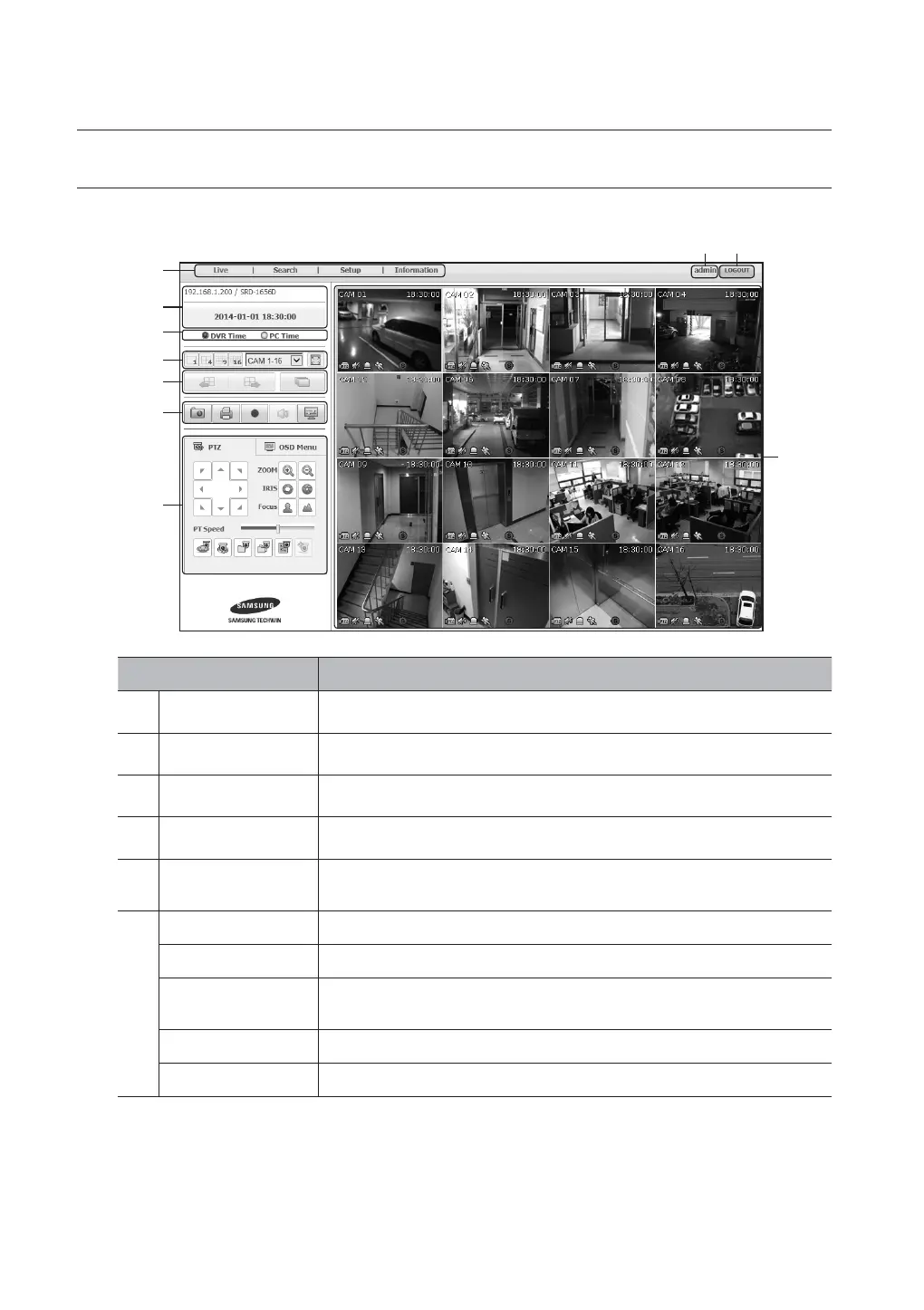 The Live Viewer screen consists of following :