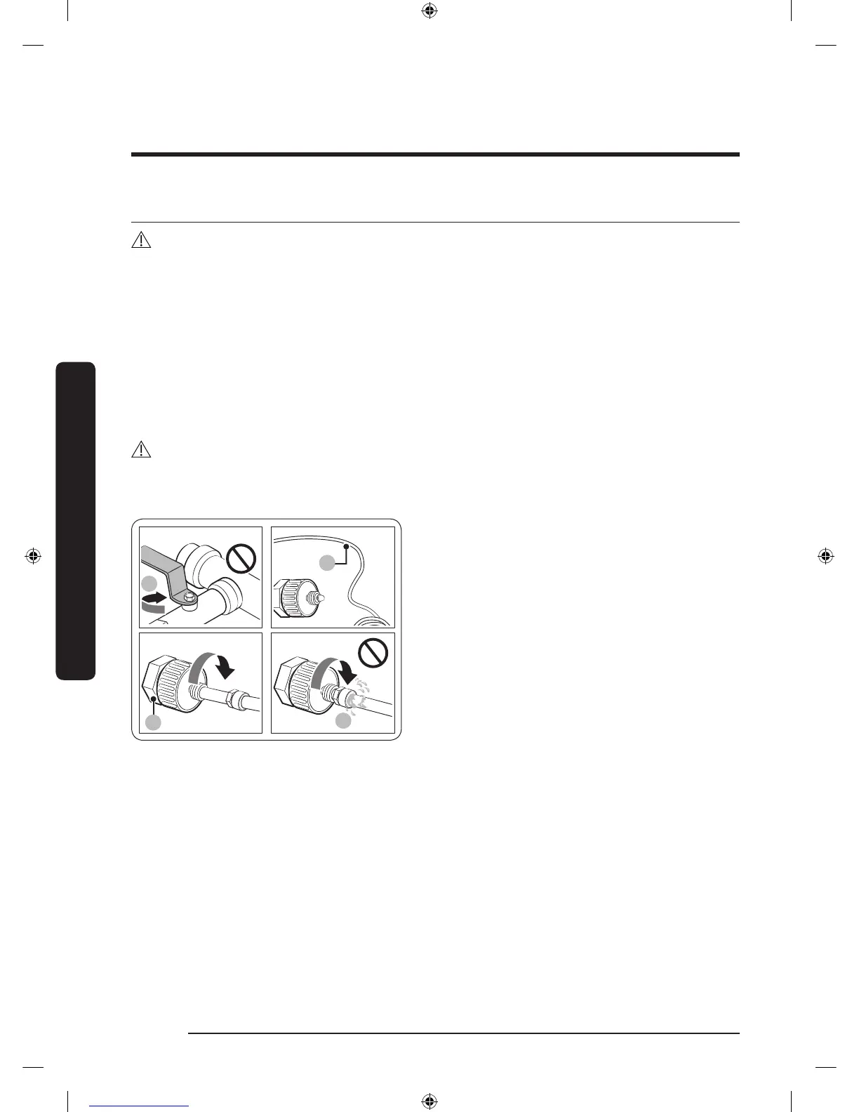 • Samsung takes no responsibility for the water line installation. If water leaks occur,