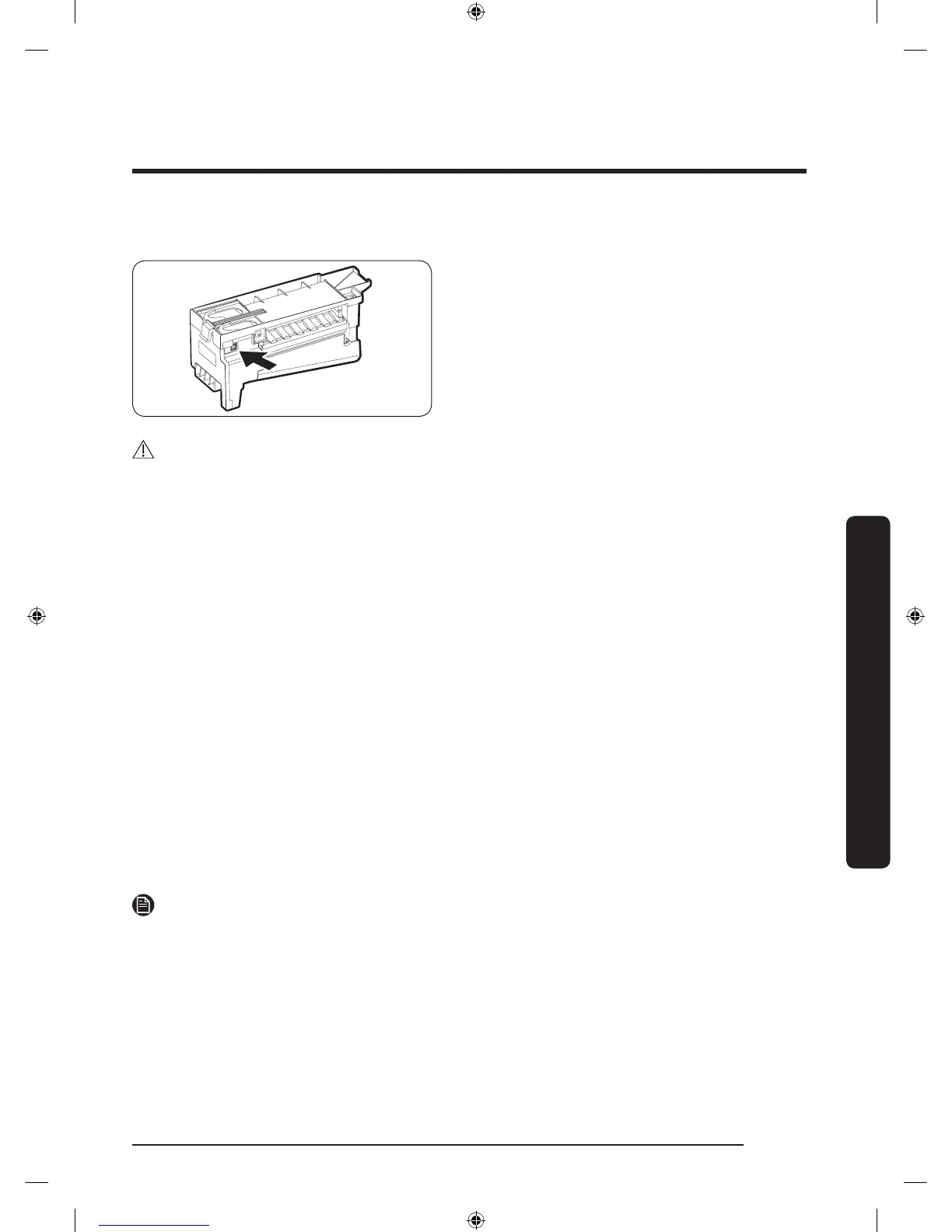 • Do not put ngers or any objects into the dispenser outlet or the ice maker. This can