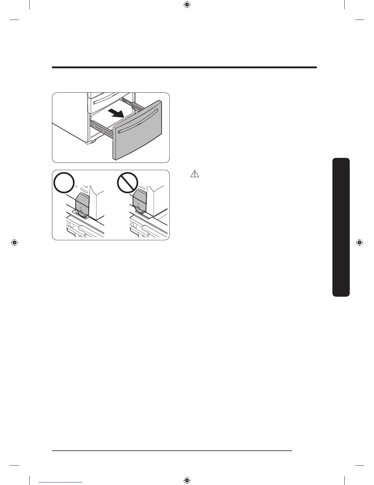 Once the refrigerator is in or near it's nal location, re-attach the freezer drawer by