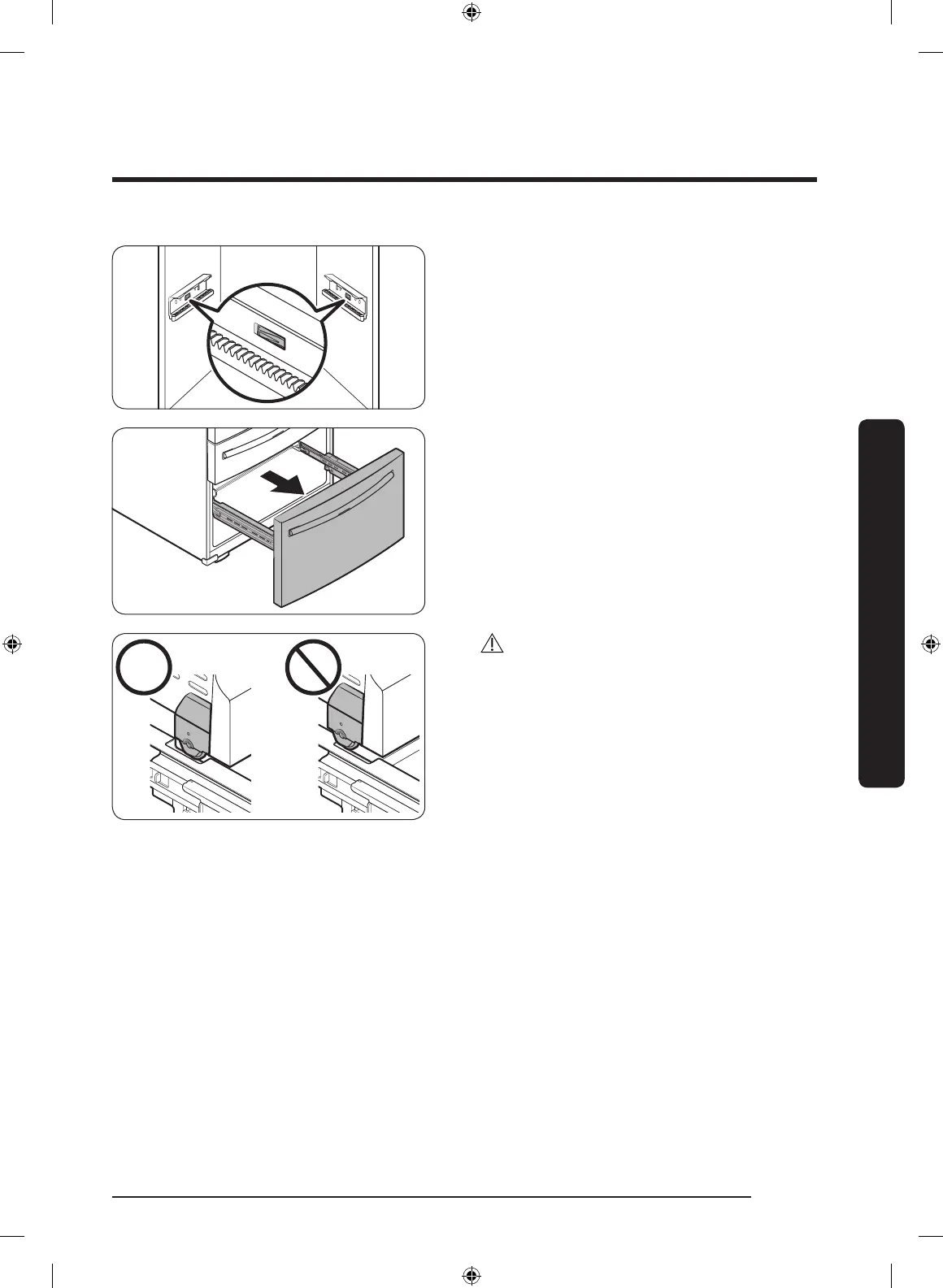 Once the refrigerator is in or near it's nal location, re-attach the freezer drawer by