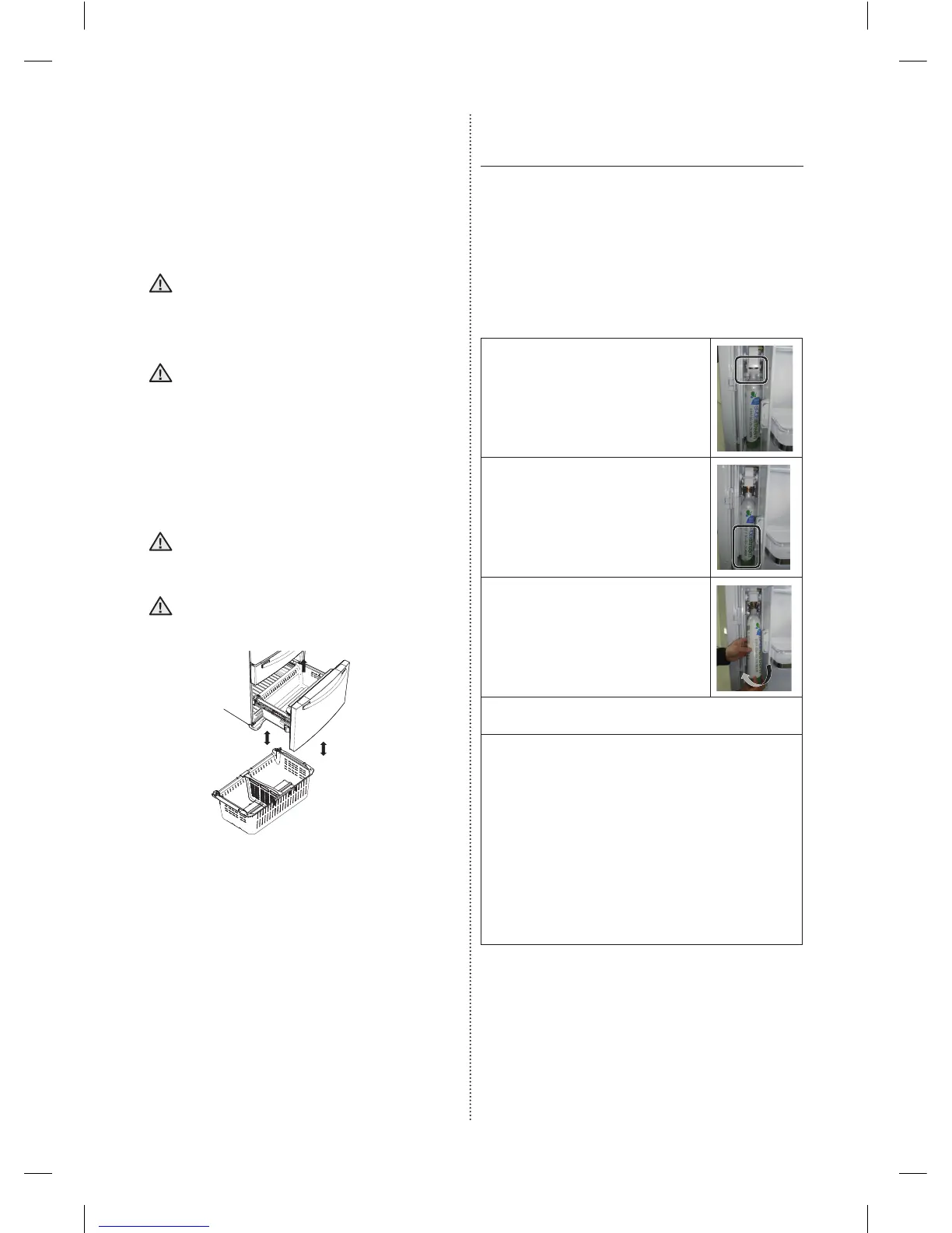 - To re-install the freezer drawer : Place the