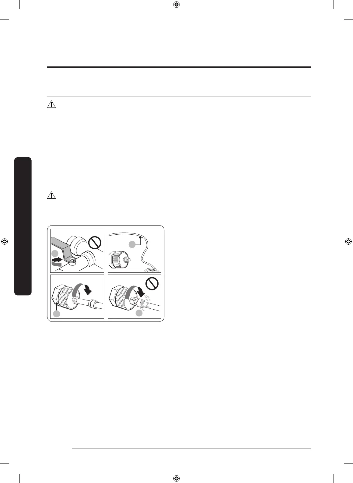 • Samsung takes no responsibility for the water line installation. If water leaks occur,