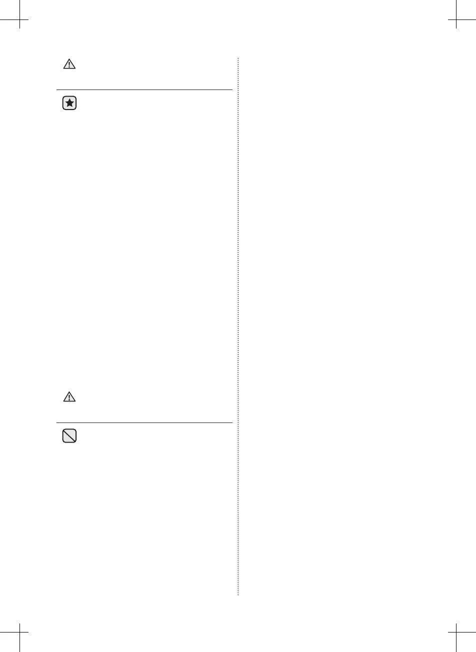• Do not use or place any