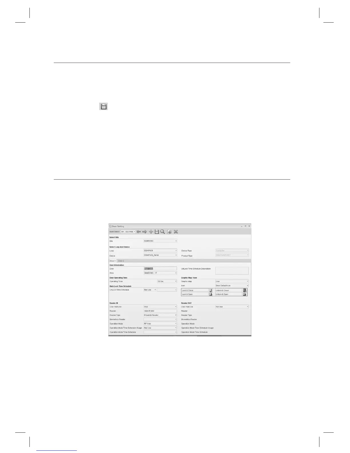 Select a [Device]. According to the selected device’s type, number of door tabs may vary.