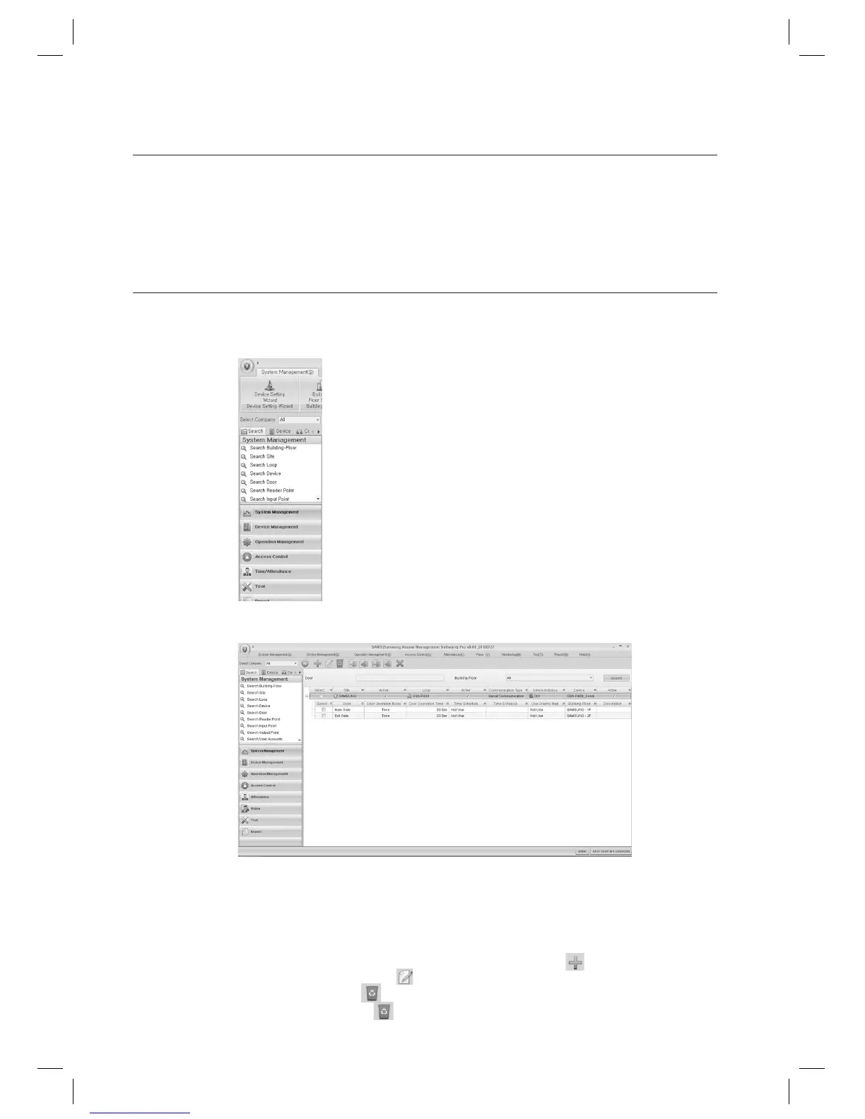 In the left [Search] tab of the main screen, select [System Management] > [Search Door].