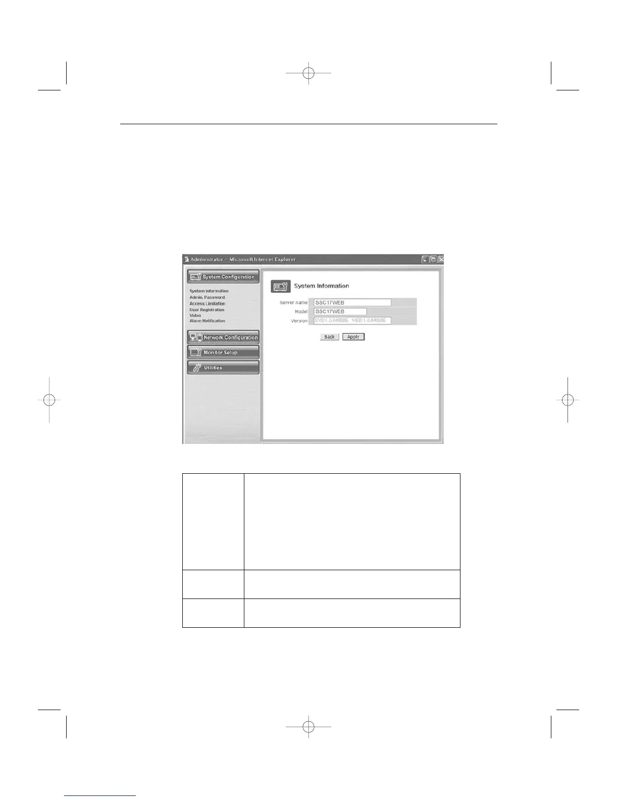 Model SSC17WEB Server product model name SSC17WEB