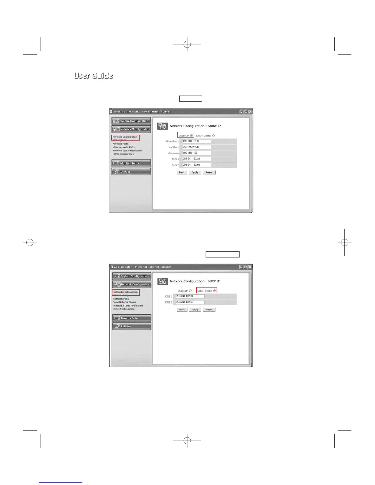 1-1. Network Configuration : Static IP / DHCP Client