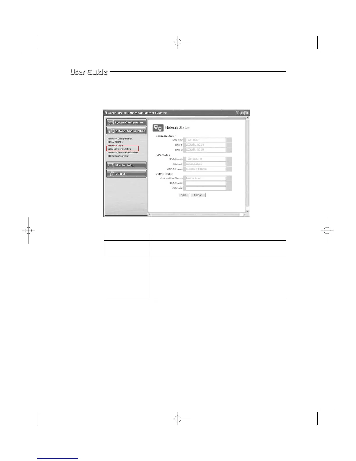This is a menu to see the general status of the network setting of the SSC17WEB Server.