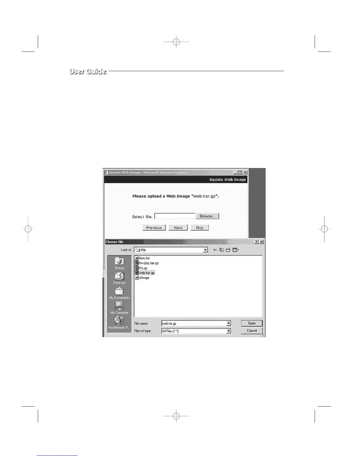 System Image Update. Choose “web.tar.gz” in the browse.