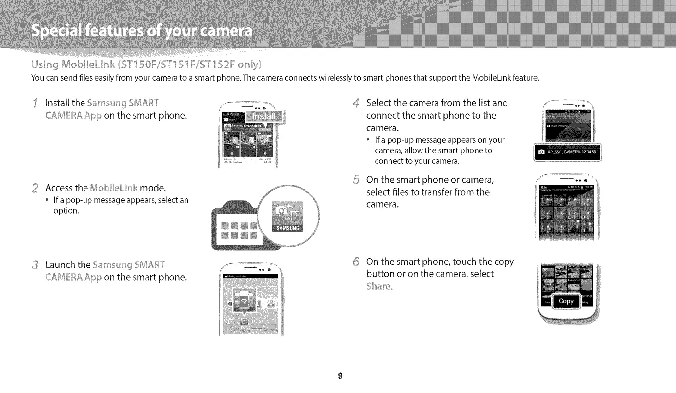 You can send files easily from your camera to a smart phone. The camera con nects wirelessly to smart phones that support the Moloilekin k feature.