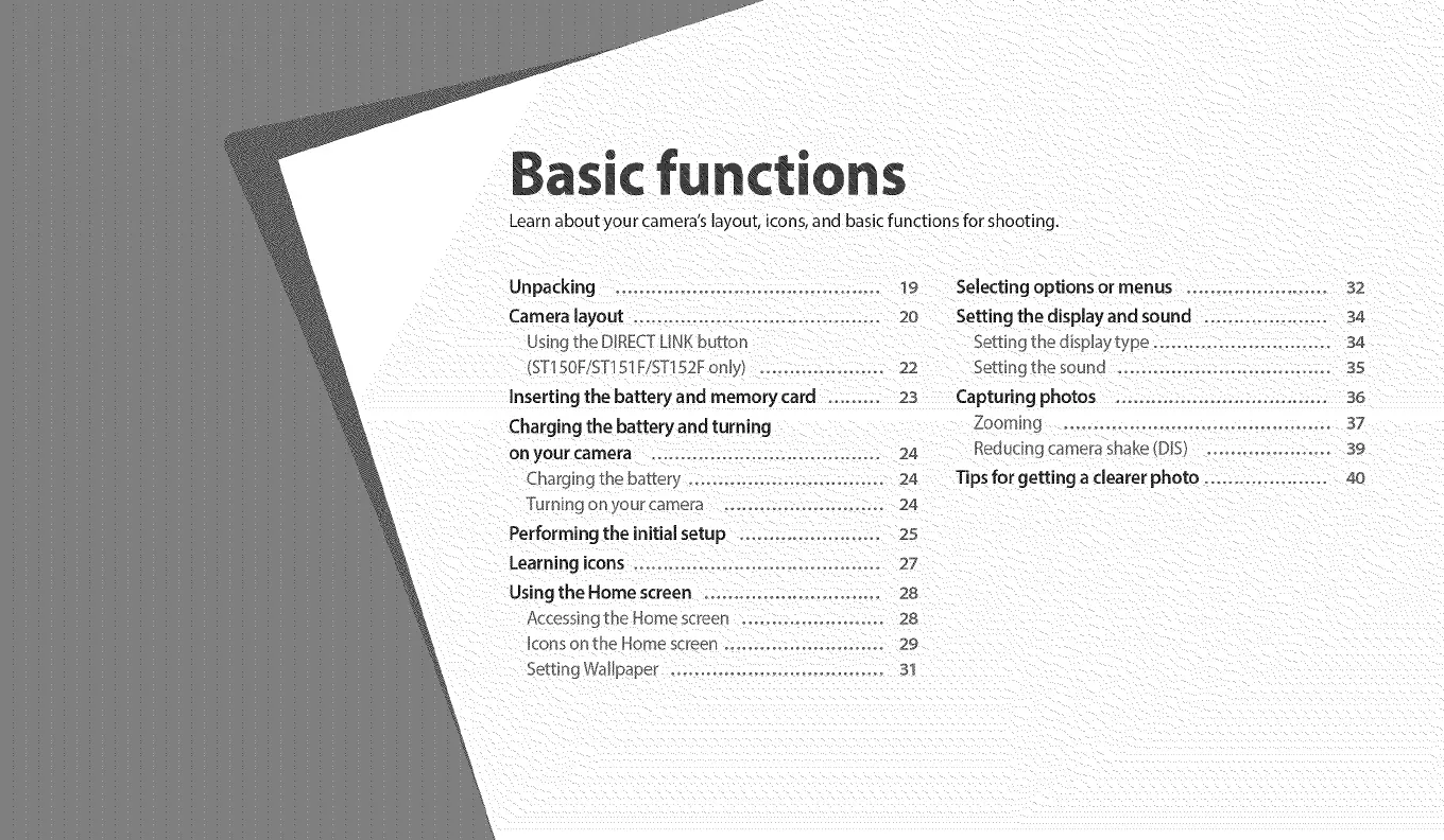 Charging the batte_f ............................. 24 Tips for getting a clearer photo .................... 40