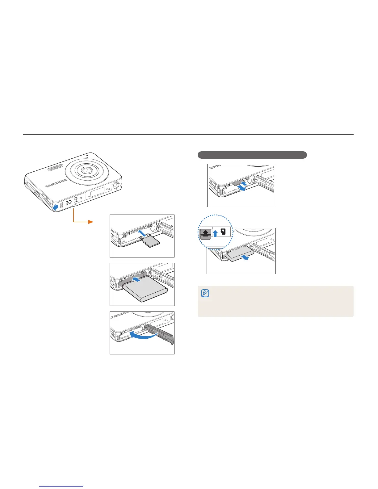 Inserting the battery and memory card