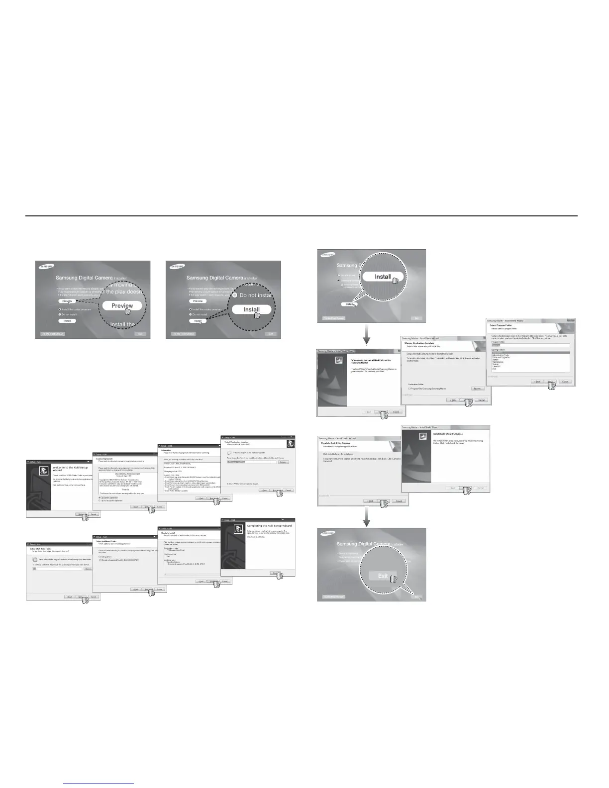 4. Install the software by instructions on the monitor.3. To play back the movie clip recorded with this camera on the