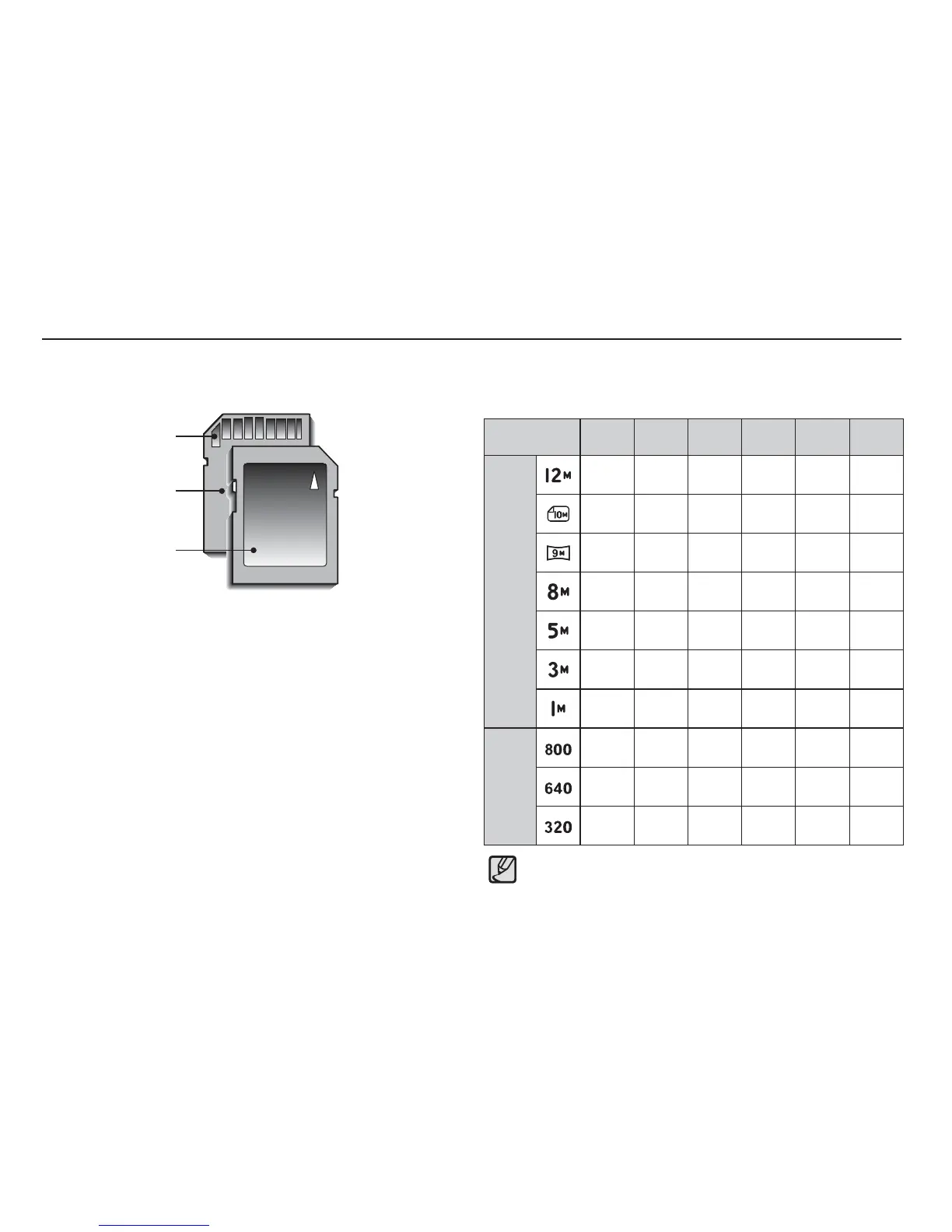 When using a 1GB SD memory, the specifi ed shooting capacity will be