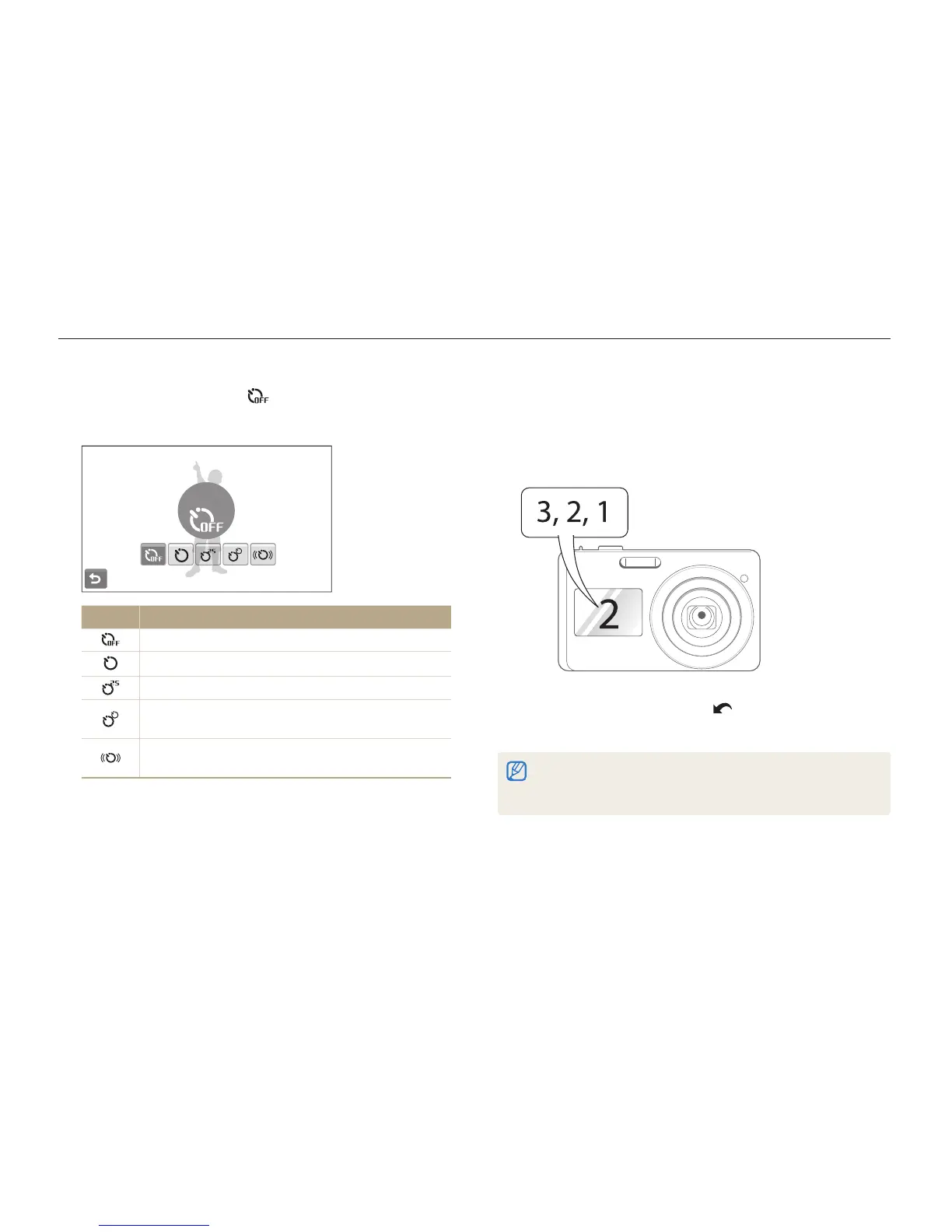 Select the timer icon or press [t Shutter] to cancel the timer.