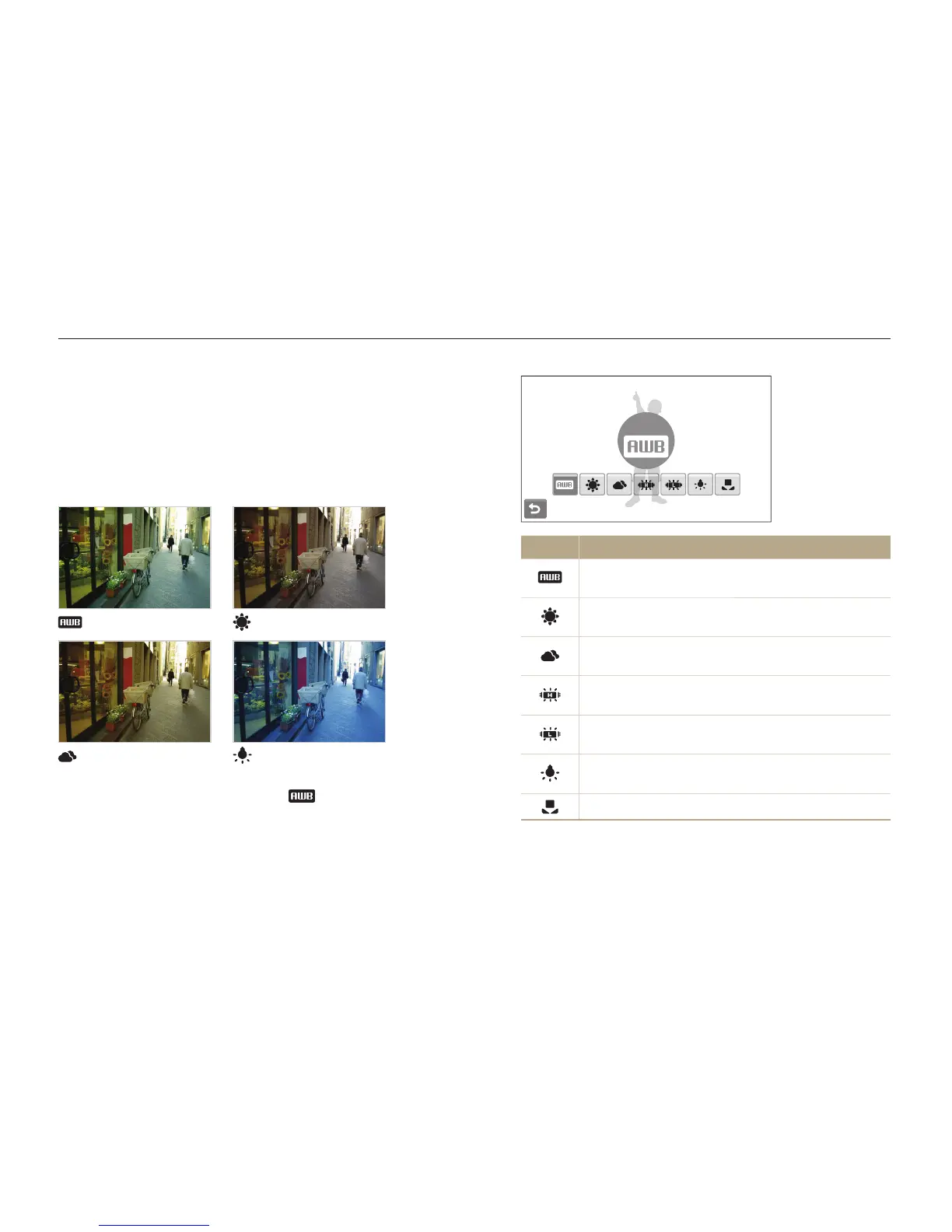 balance, such as Auto WB, Daylight, Cloudy, or Tungsten.