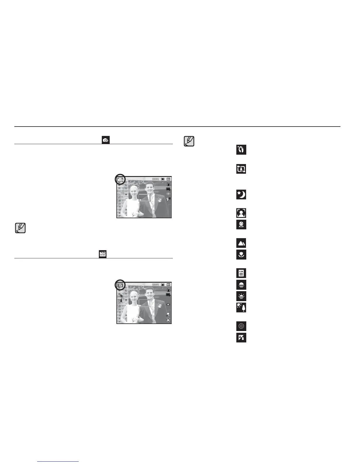 1. Select the Scene mode by using the