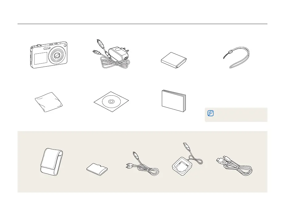 Camera AC adapter/USB cable Rechargeable battery Strap
