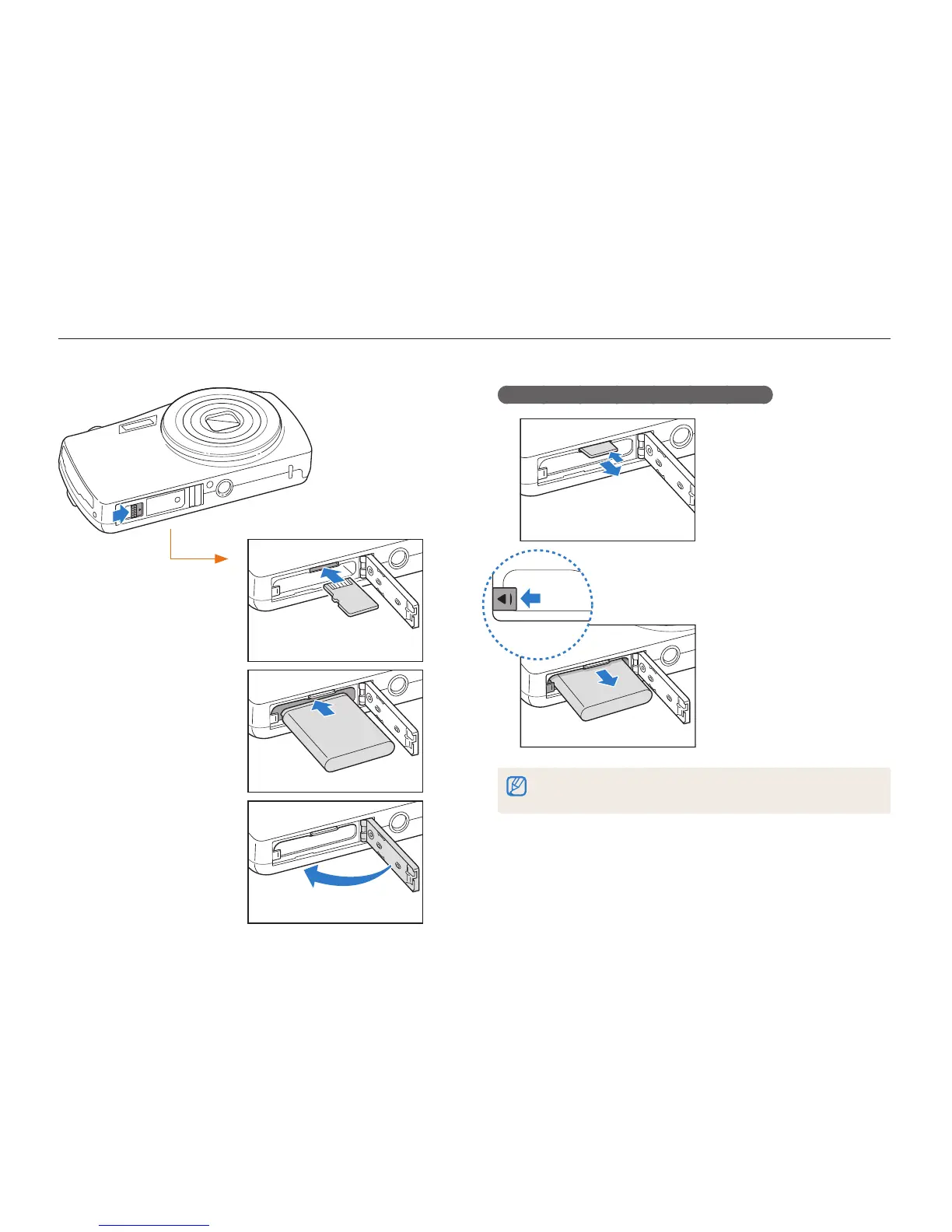 Inserting the battery and memory card