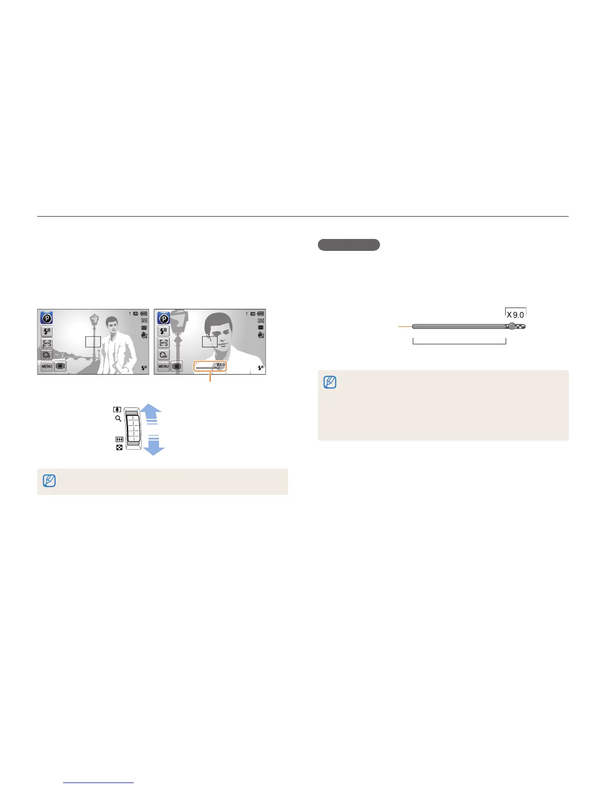 The Digital zoom is available only in Program and Scene (except Text)