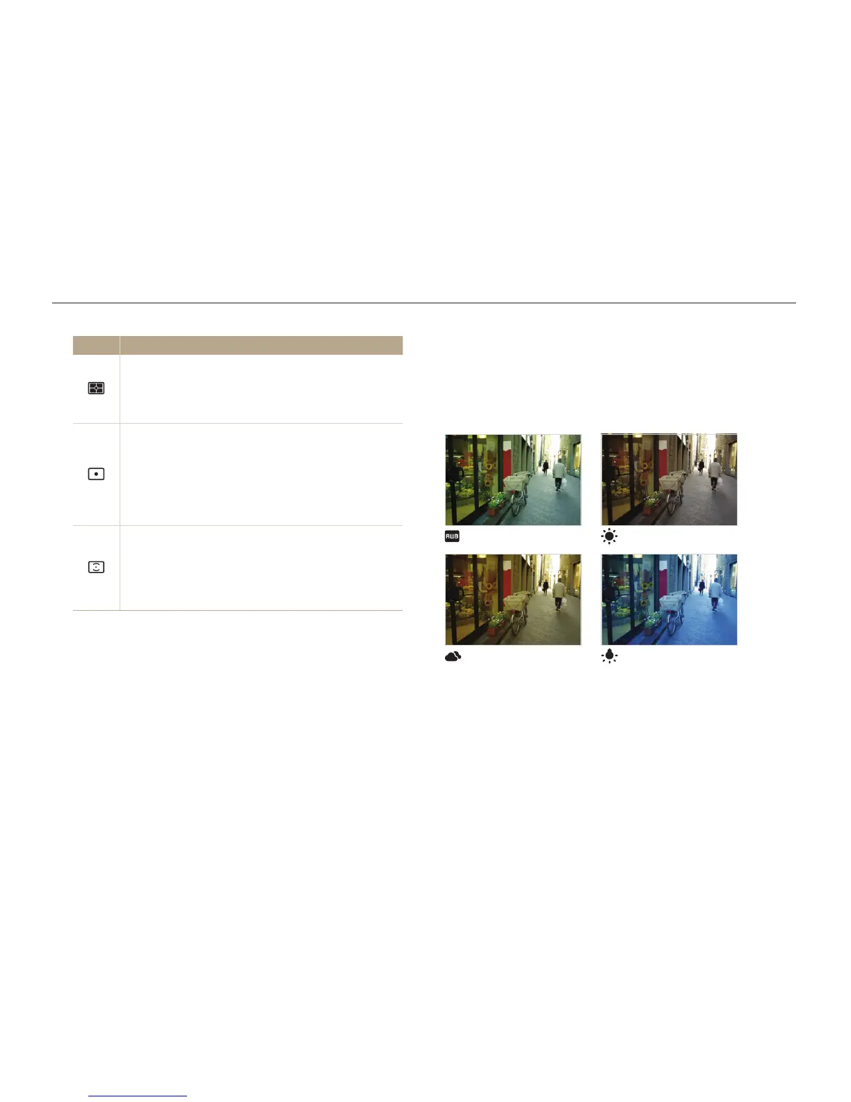 conditions, such as Auto WB, Daylight, Cloudy, or Tungsten.