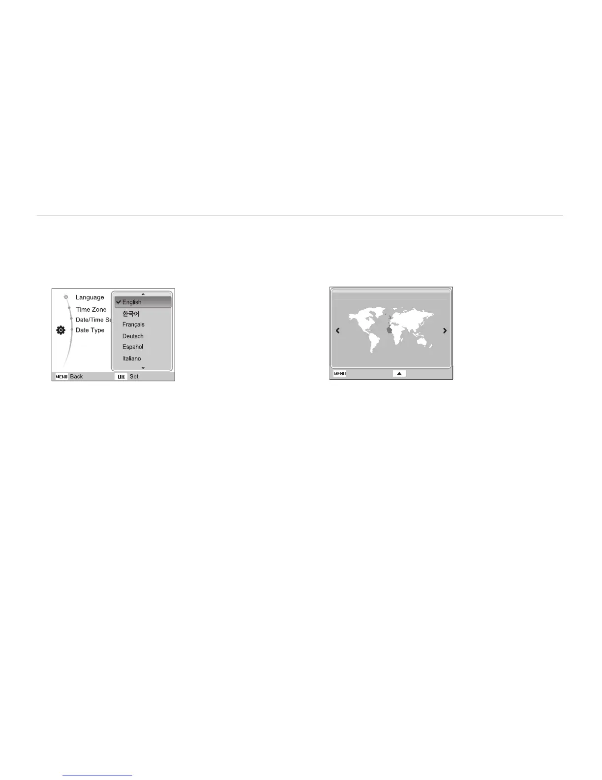 When you turn on your camera for the first time, the initial setup screen appears. Follow the steps below to configure the camera’s basic