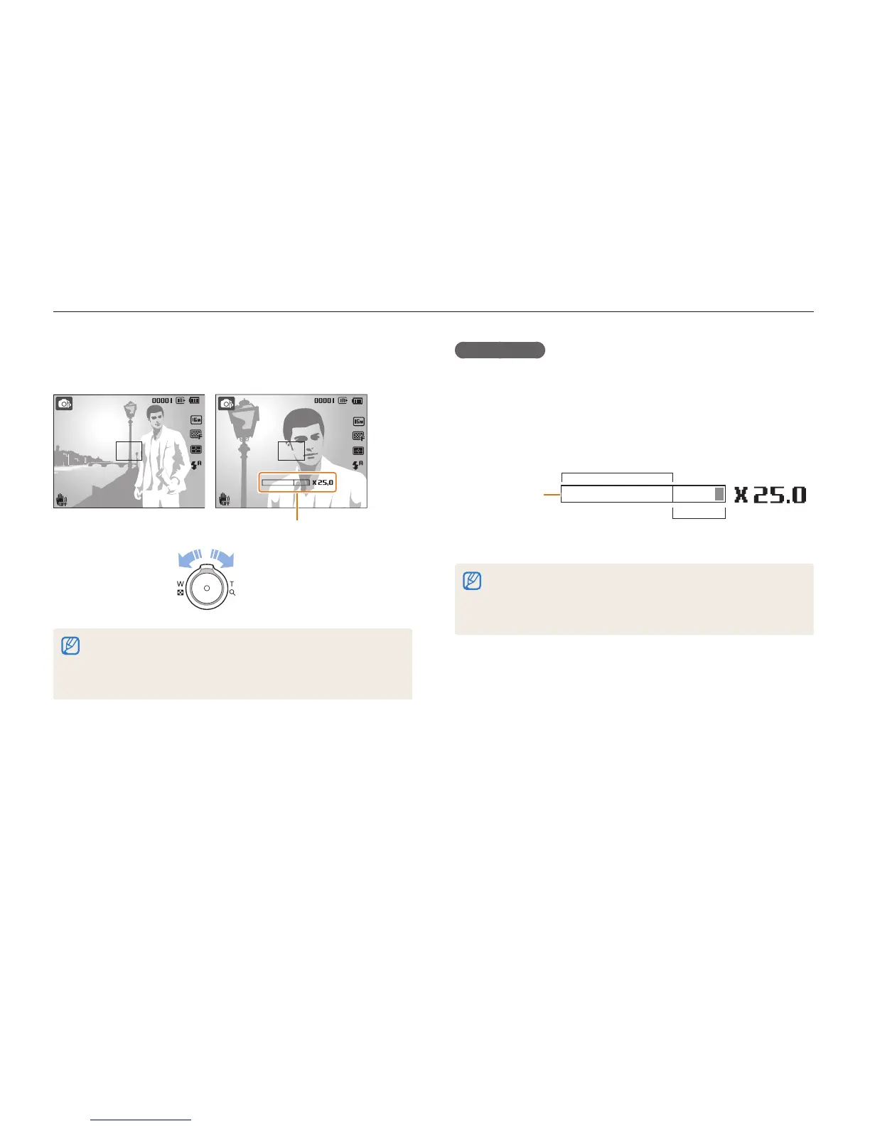 using both the 5X Optical zoom and 5X Digital zoom, you can