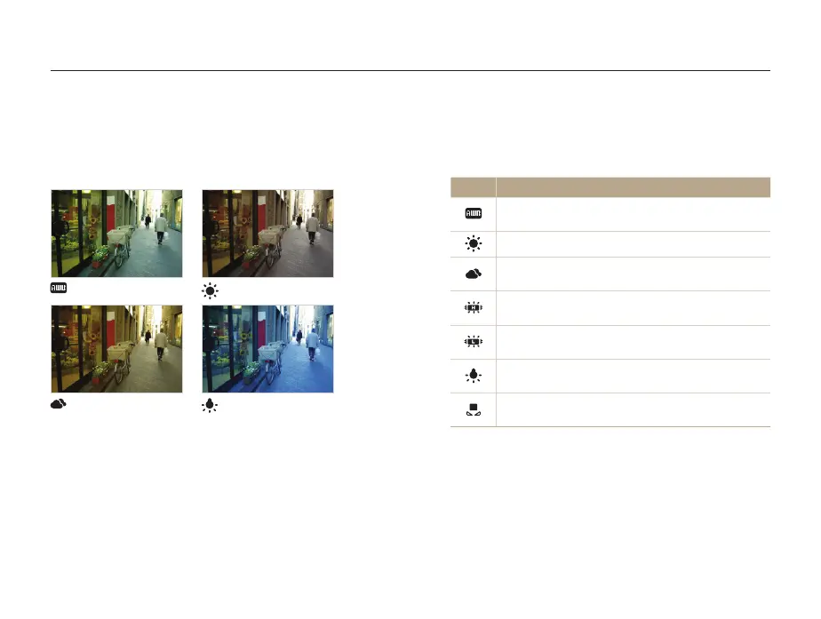 conditions, such as Auto WB, Daylight, Cloudy, or Tungsten.