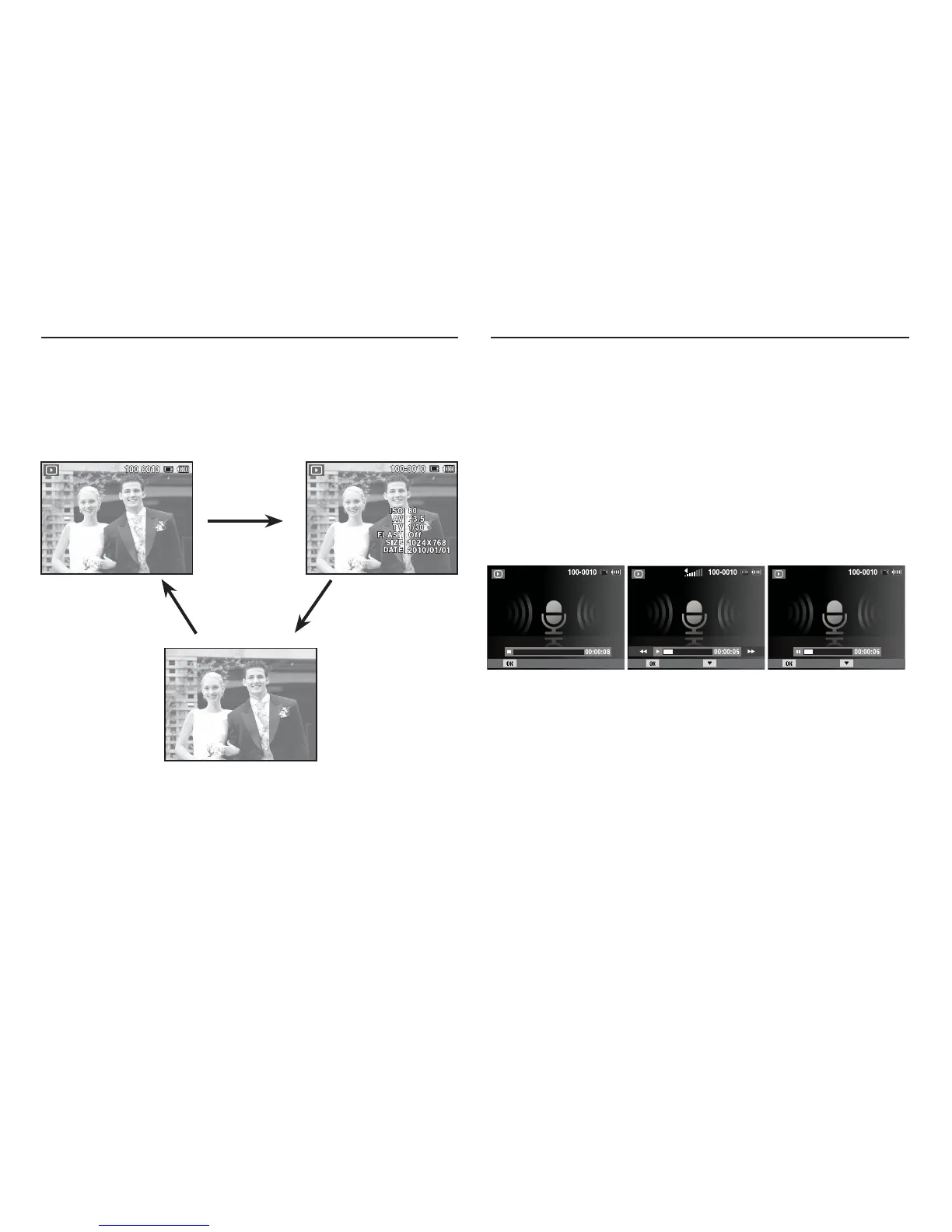 ·In Stop mode : Plays a still image with a voice memo, a