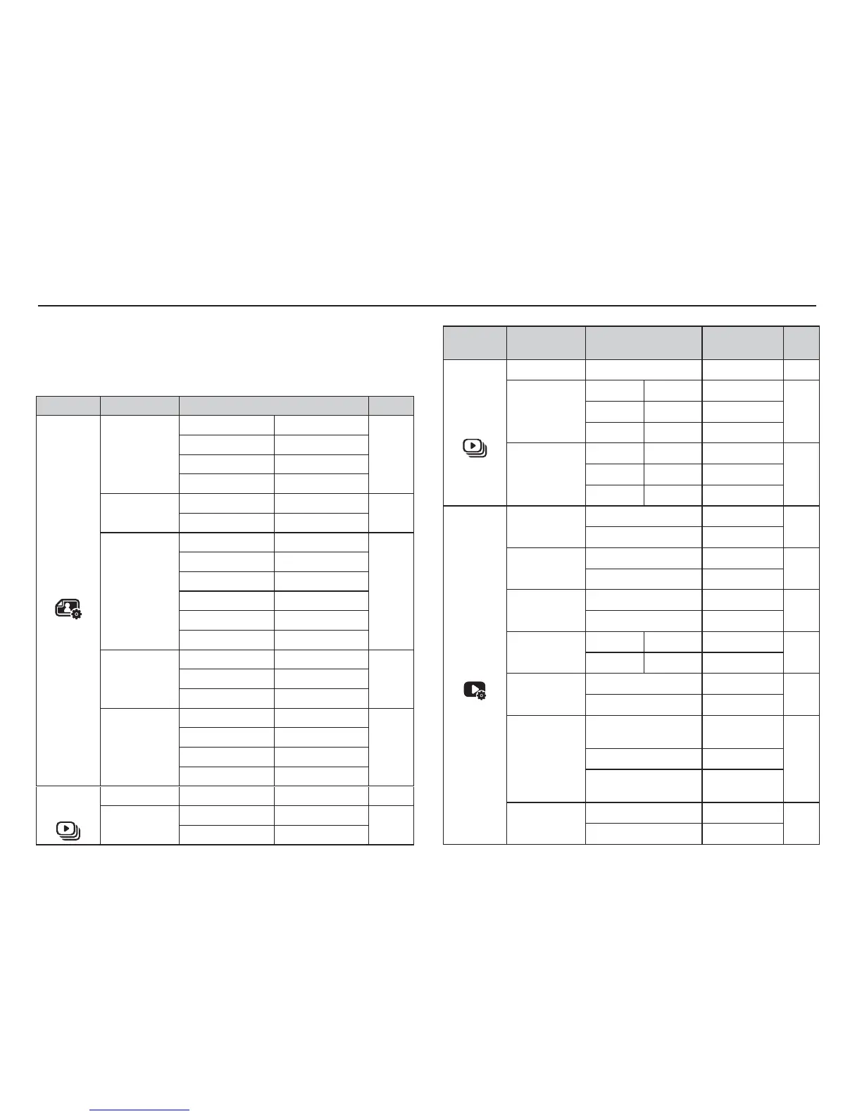 The menus you can set up in Play mode are as follows. To capture an image