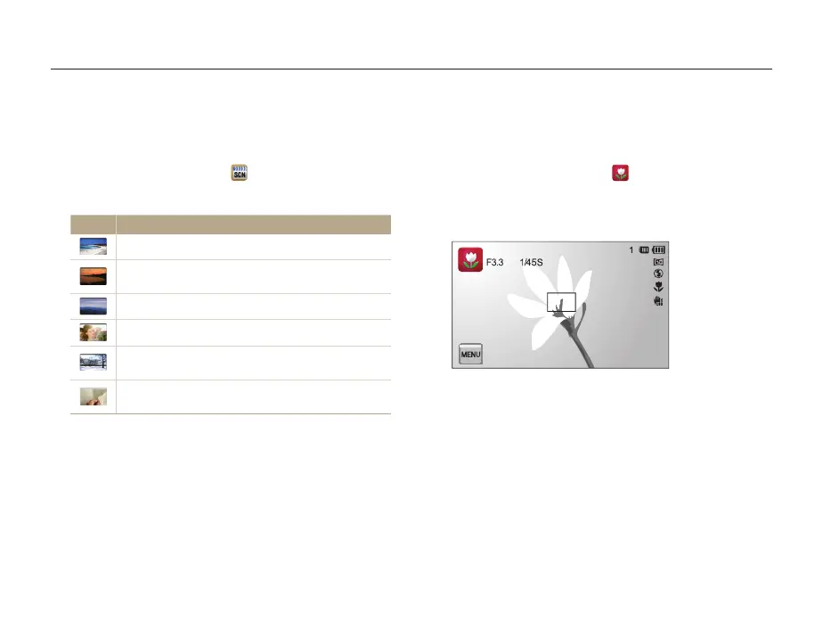 In Scene mode, you can capture a photo with options that are