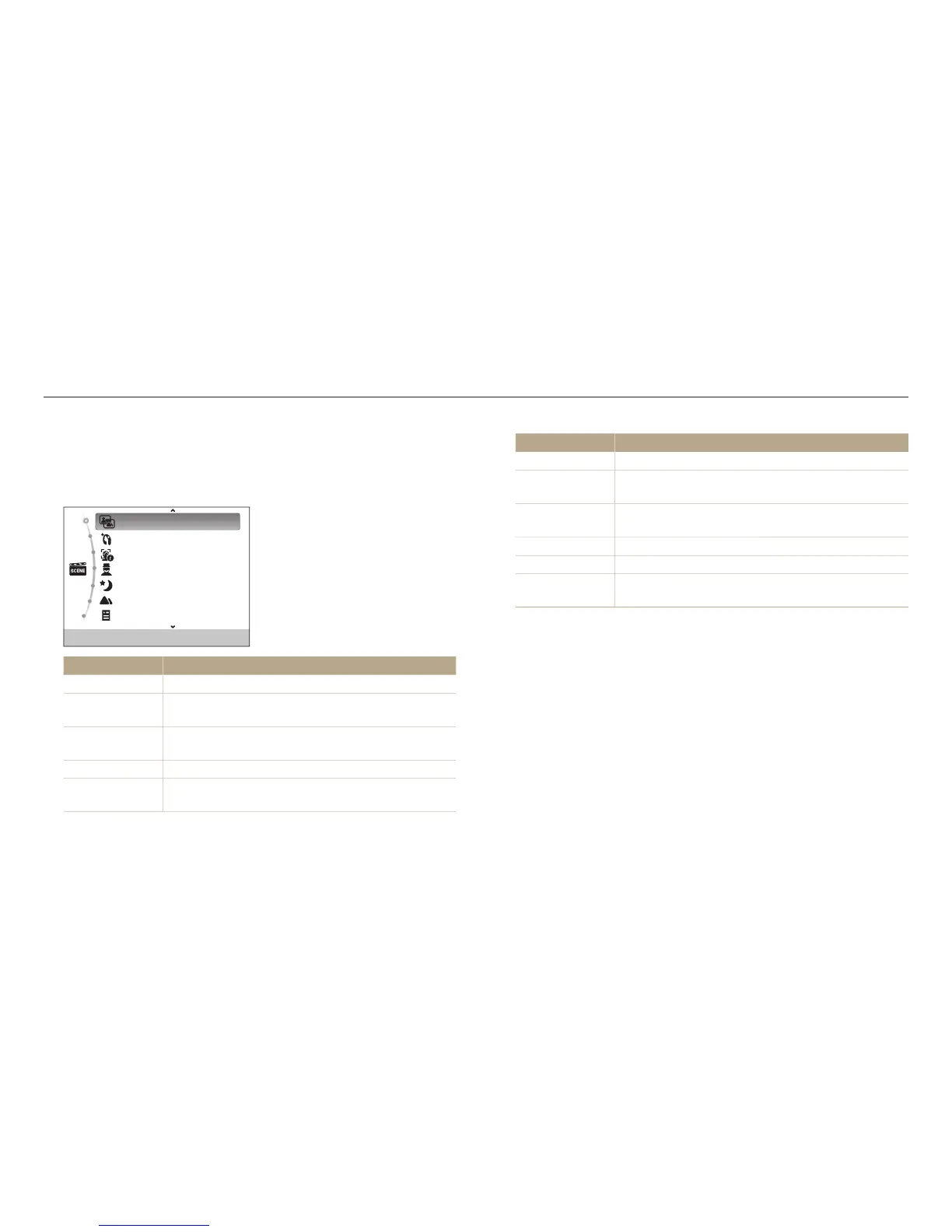 In Scene mode, you can capture a photo with options that are preset for a specic scene.