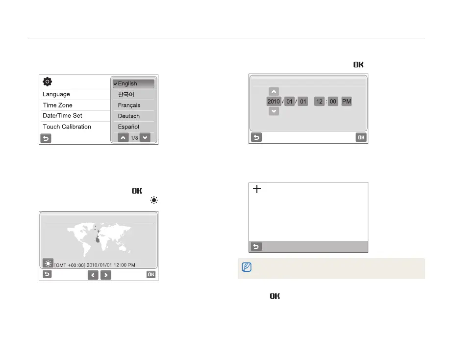 When the initial setup screen appears, follow the steps below to configure the camera's basic settings.