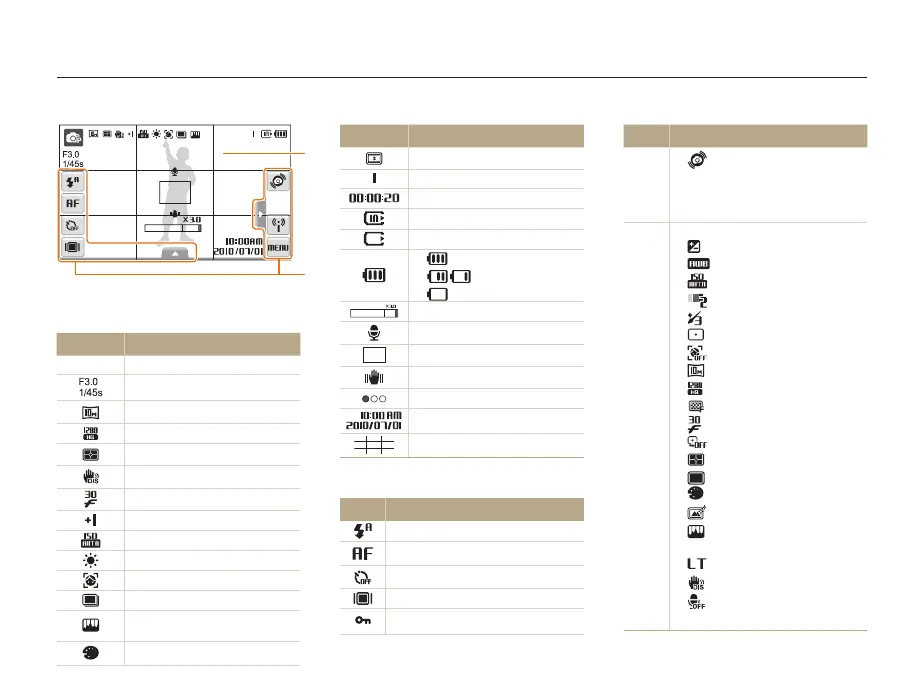 The icons displayed will change according to the mode you select or the options you set.