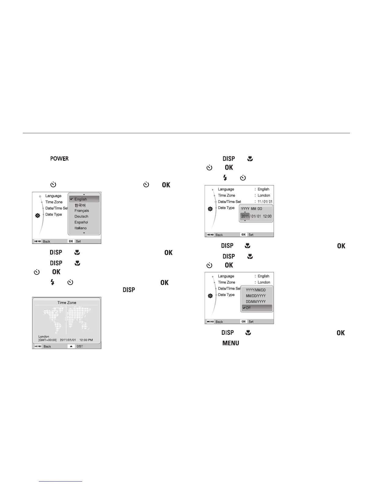 • The initial setup screen appears when you turn on the camera
