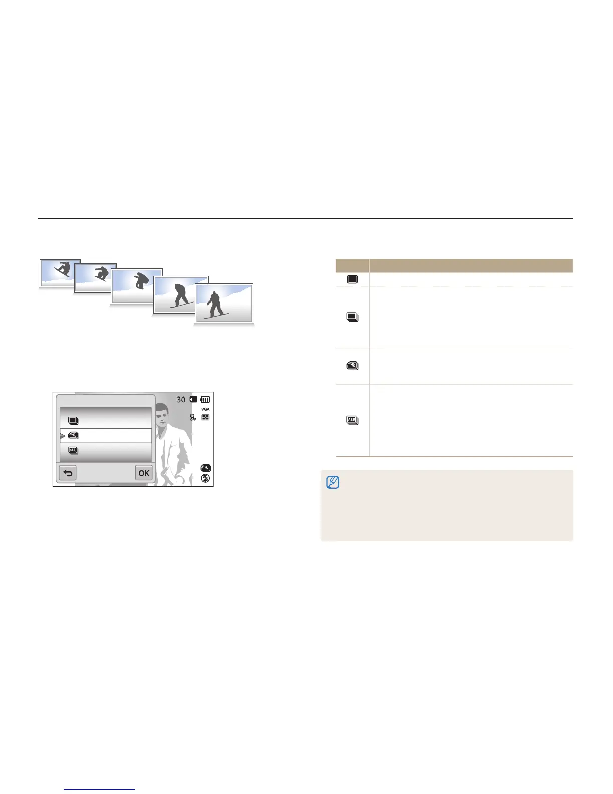 fotografías. En estos casos, seleccione uno de los modos de ráfaga para poder capturar varias fotografías rápidamente.