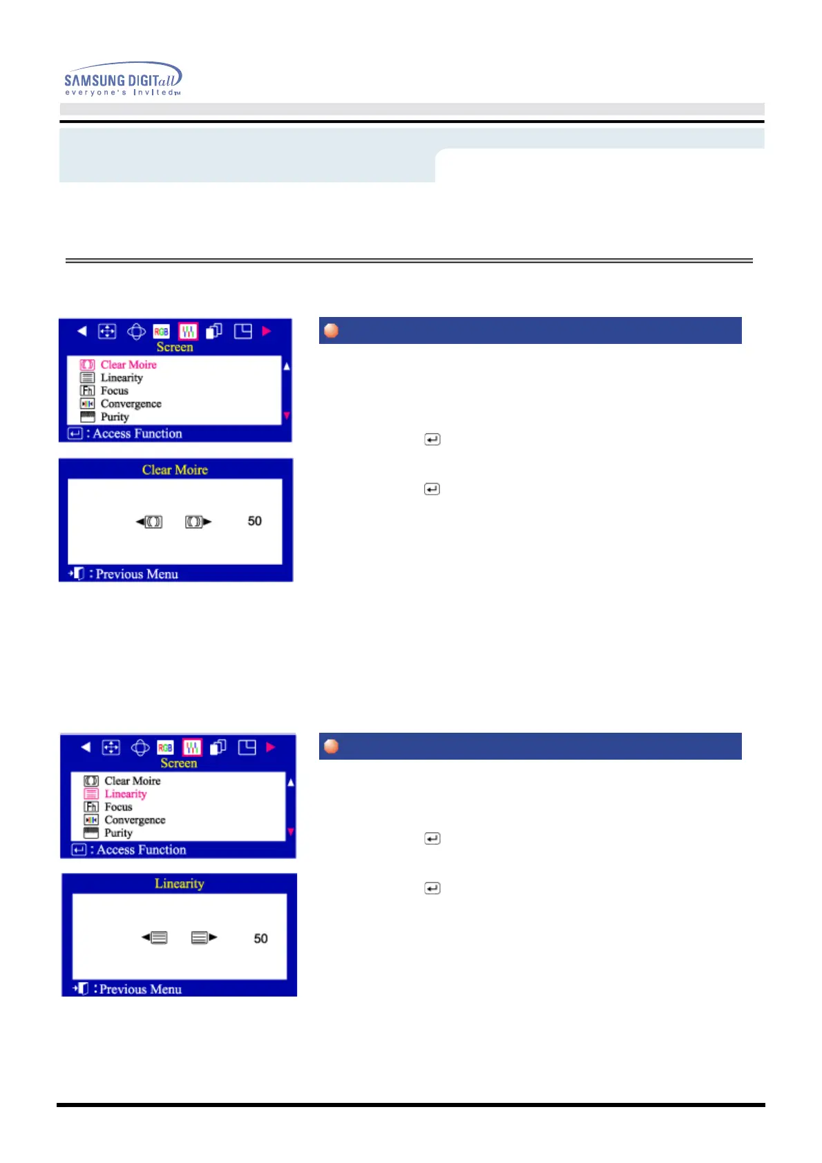 3 Push the Menu( ) button to open the Linearity adjustment screen.