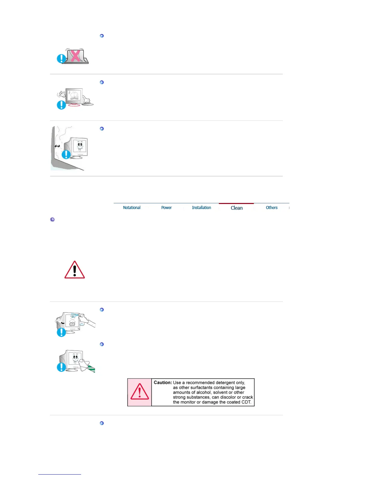 When cleaning the monitor case or the surface of the CDT, wipe with a slightly
