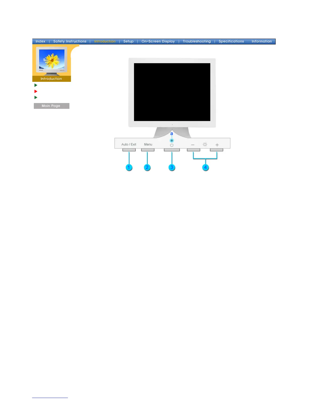 3. Power button Use this button to turn the monitor on and off.