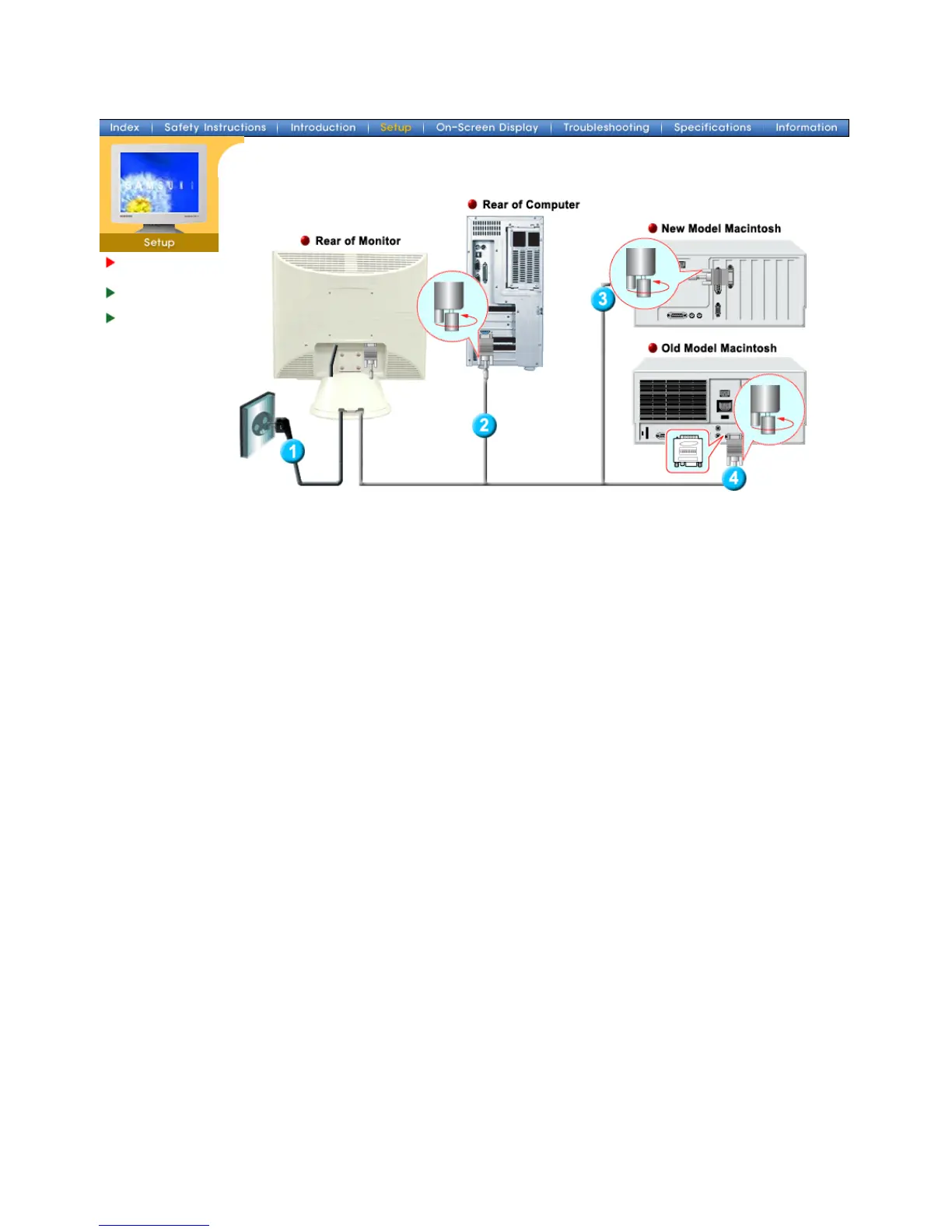 3. Connect the monitor to the Macintosh computer using the D-SUB connection cable.