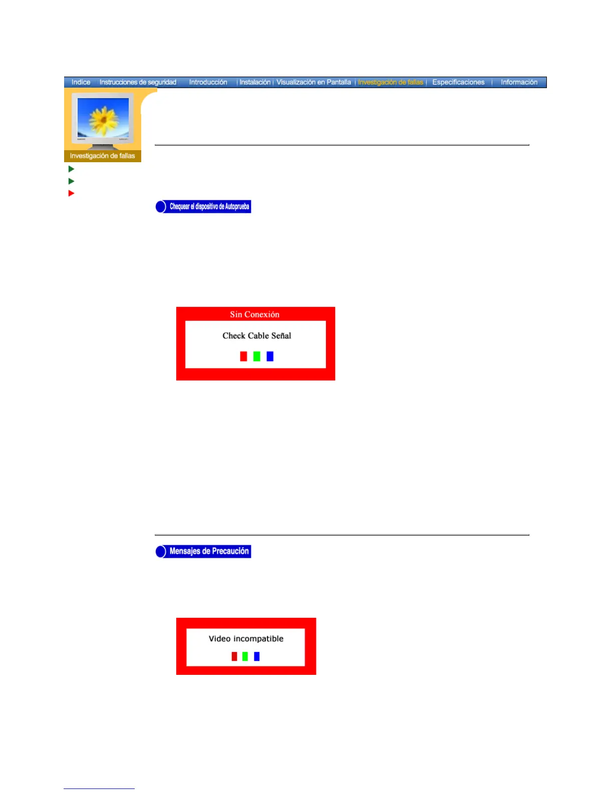 Si el monitor está funcionando correctamente, se verá una caja con el borde y el texto