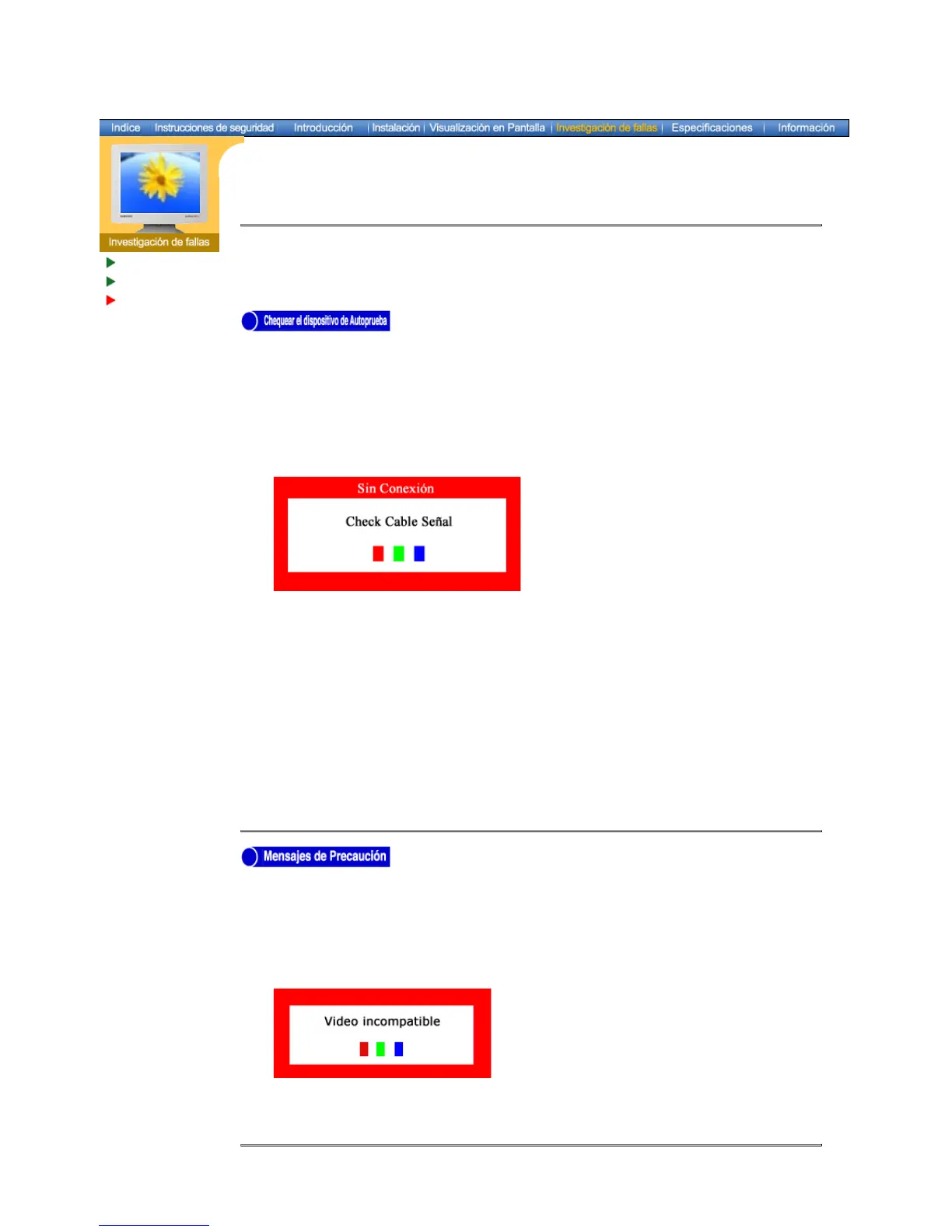 Si el monitor está funcionando correctamente, se verá una caja con el borde y el texto