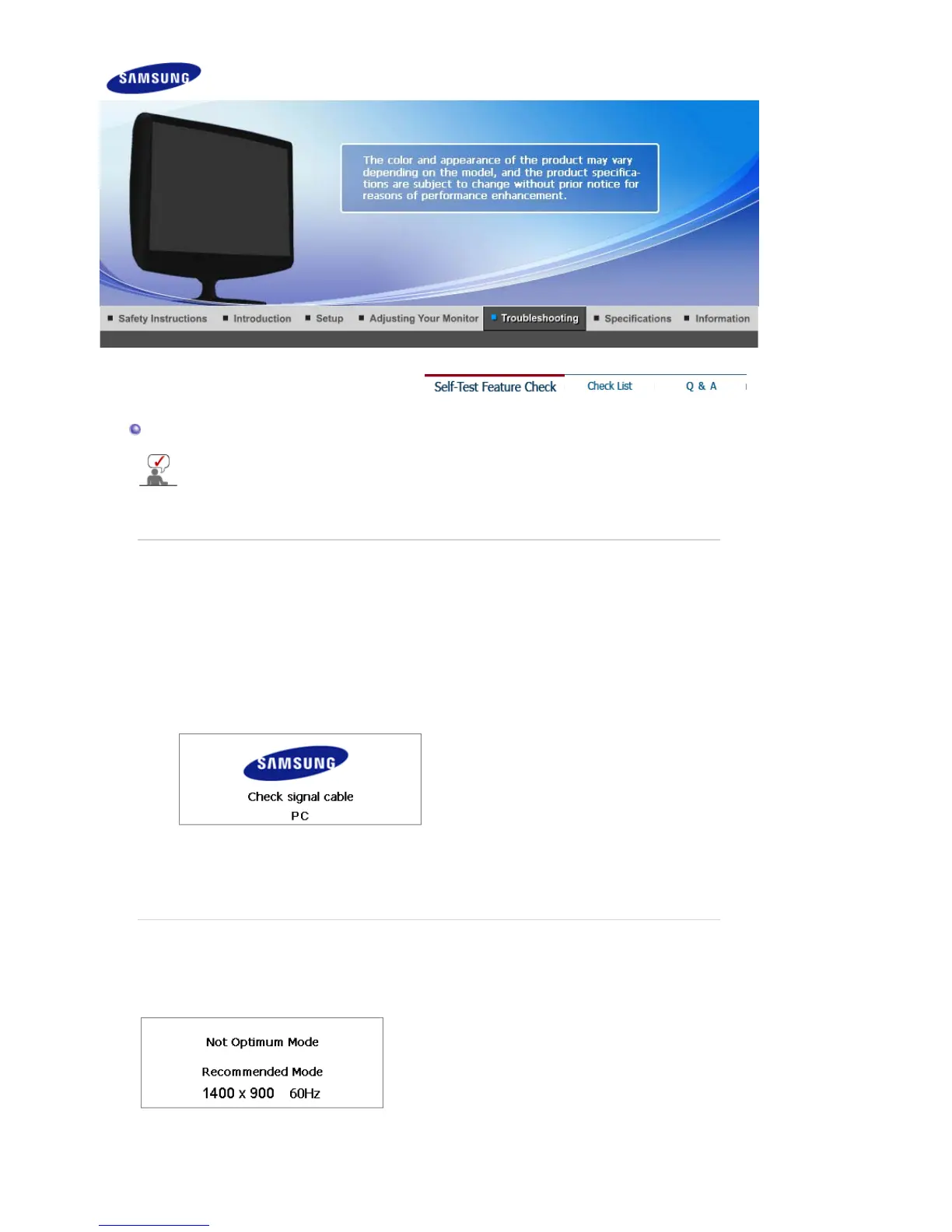 Self-Test Feature Check | Not Optimum Mode | Display Adapter Driver
