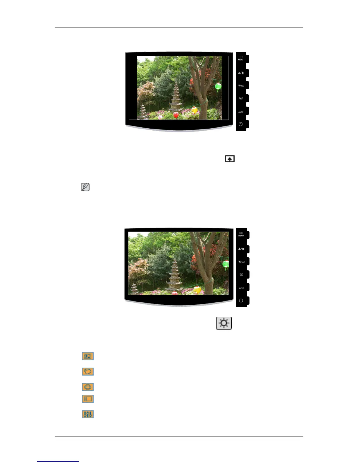 When OSD is not on the screen, push the Brightness ( ) button to adjust brightness.