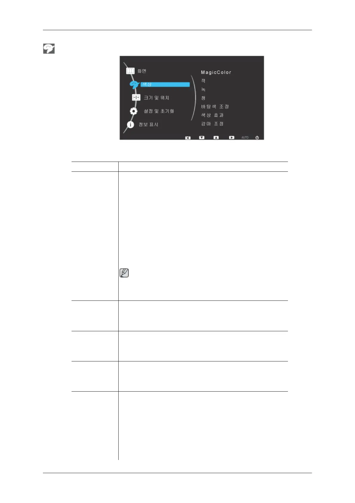 해제 - MagicColor 기능을 해제합니다.