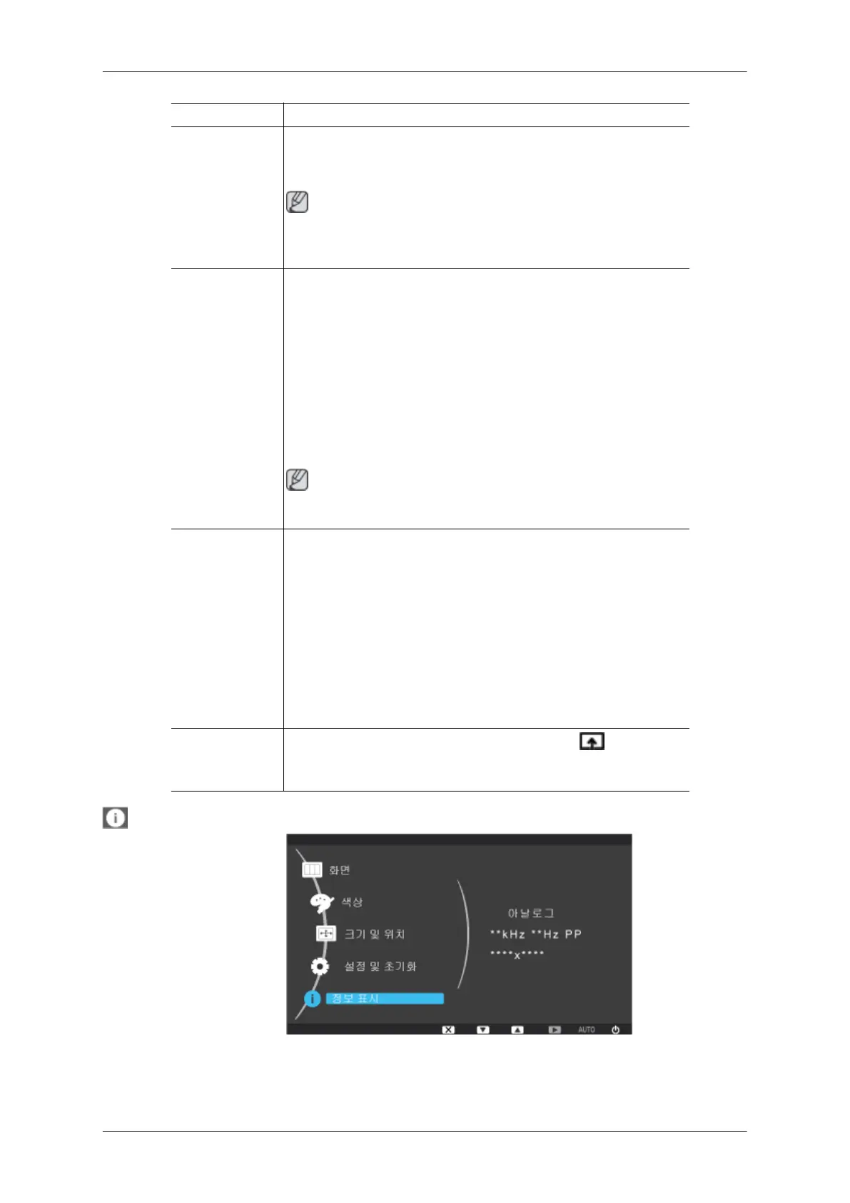 메뉴 표시 시간 일정한 시간동안 화면조정 메뉴를 조정하지 않으면 자동으로 메