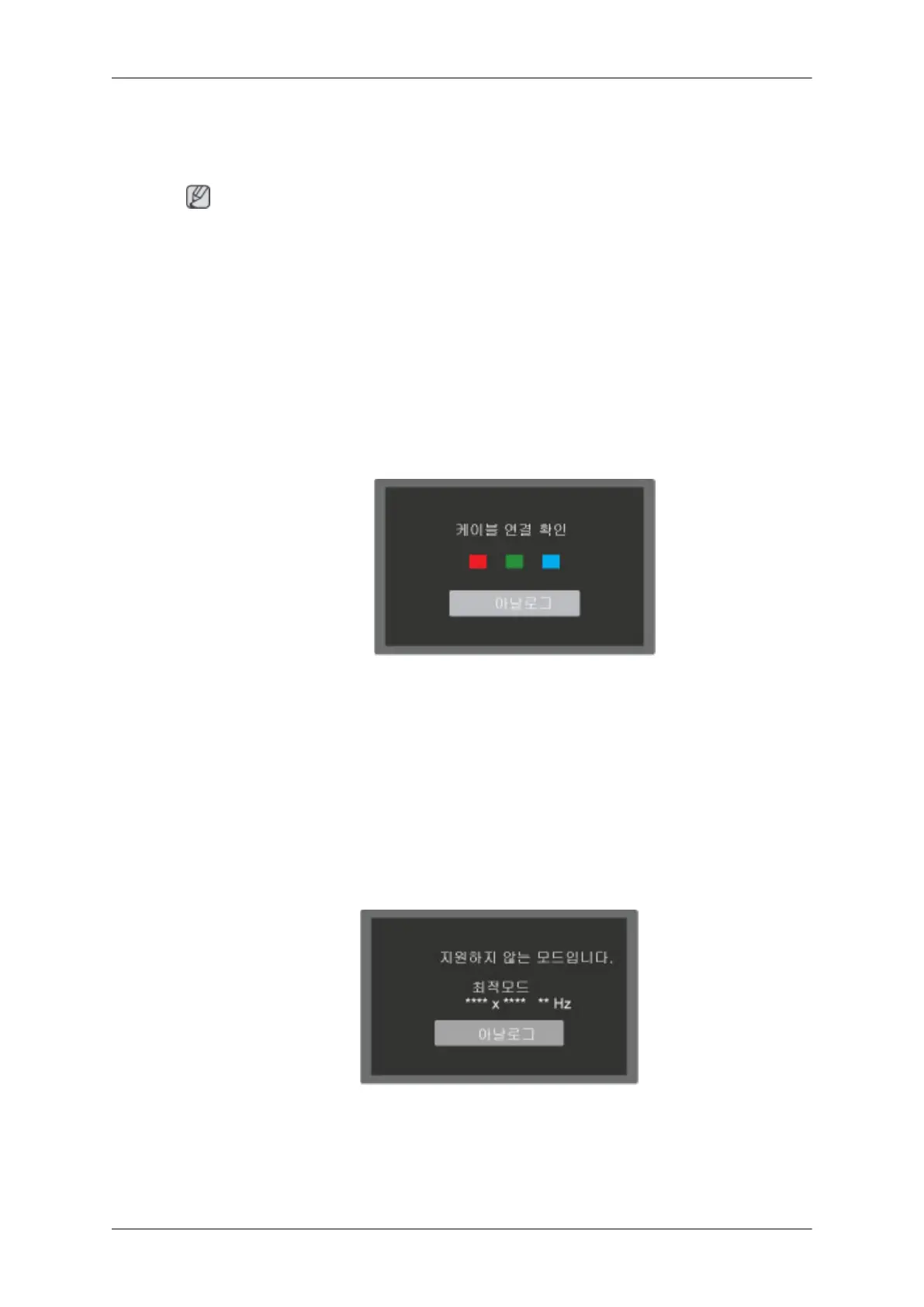 입력 신호에 문제가 있을 경우 전원 표시등이 켜 있을지라도 화면에 메시지가 나타나거나