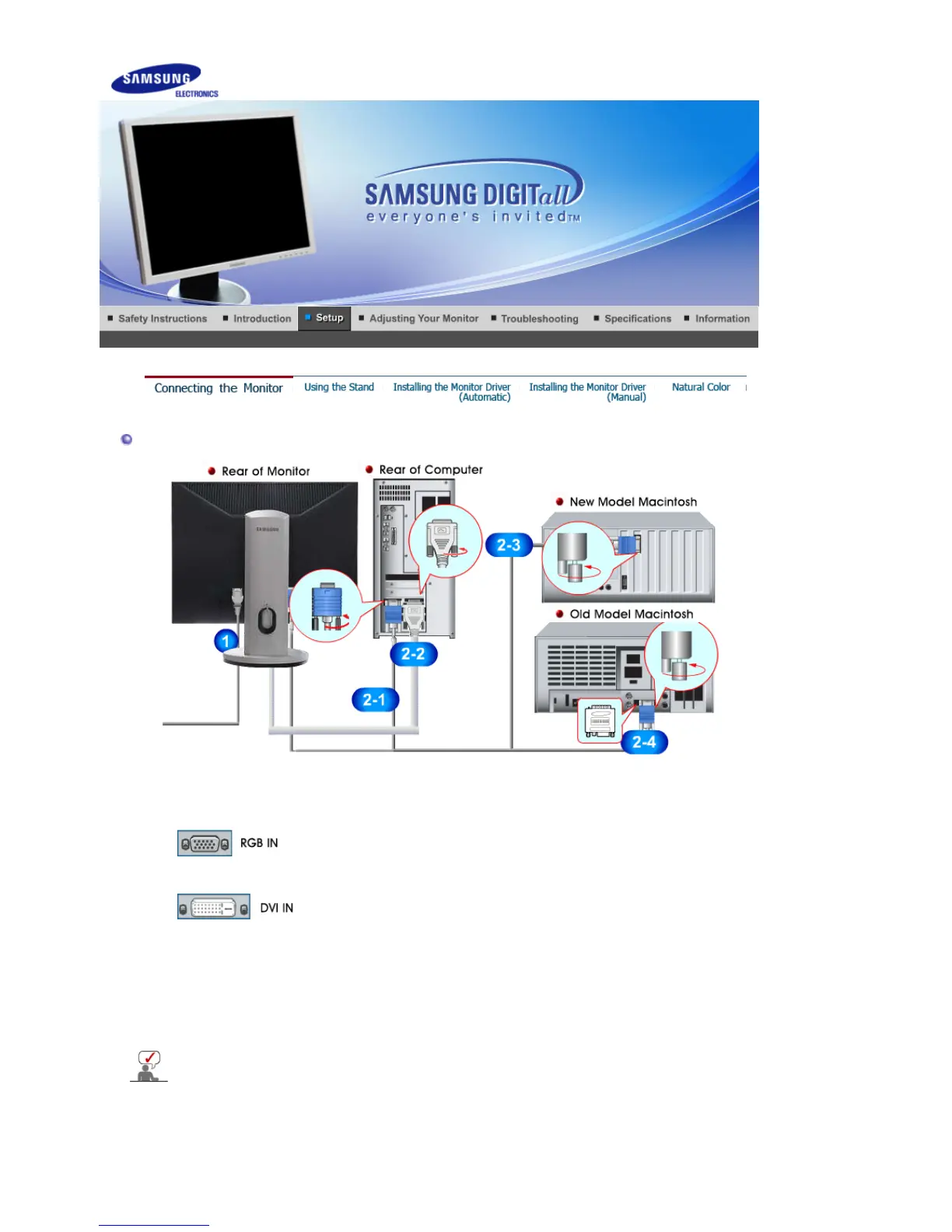 Connect the monitor to the Macintosh computer using the D-SUB connection cable.